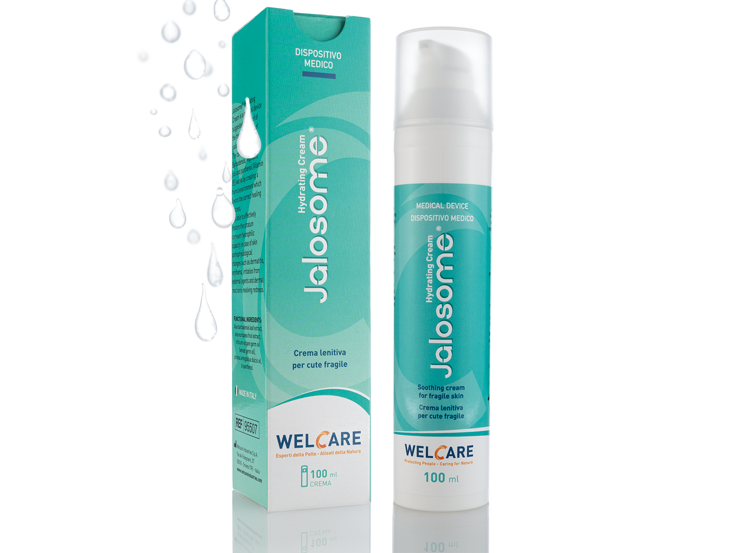 Jalosome® Hydrating Cream Jalosome® Hydrating Cream, cildin fizyopatolojik değişimlere bağlı olarak stratum korneum (cildin en dış tabakası) üzerindeki hidrofilik kapasitesini etkili bir şekilde geri kazandıran bir tıbbi cihazdır. Bu krem, çevresel etkenlerden kaynaklanan tahrişler ve kızarıklıkla seyreden cilt reaksiyonları gibi durumlarda cildin nem tutma kapasitesini artırarak sağlıklı bir bariyer oluşturur. Paraben, lateks ve gluten içermez, bu sayede hassas ciltler için güvenli bir kullanım sunar. Jalosome® Hydrating Cream, içeriğinde yer alan çeşitli aktif bileşenlerin emülsiyonundan oluşur. Bu formülasyon, cildin nem dengesini koruyarak fizyopatolojik değişimlerin yol açtığı kuruluğu ve hassasiyeti giderir. Aynı zamanda nemli bir ortam oluşturarak doğru ve sağlıklı bir iyileşme sürecini destekler.